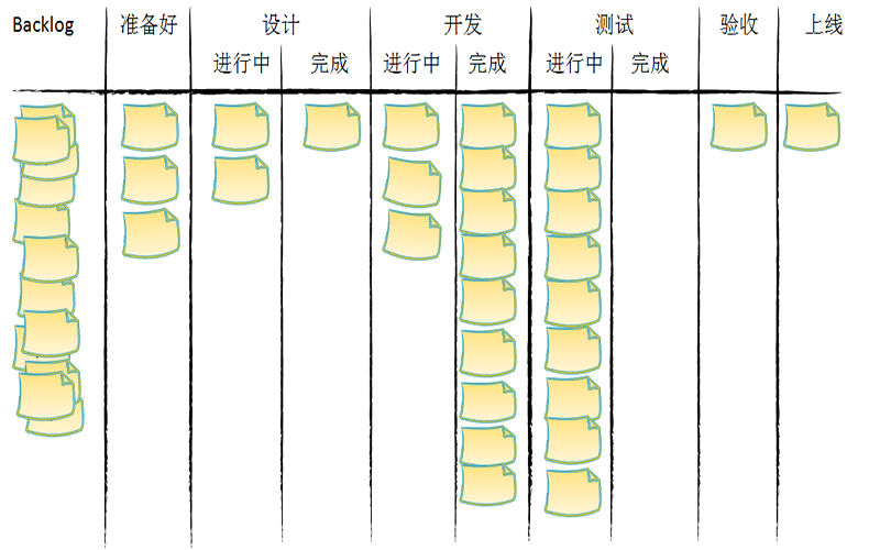 1)让瓶颈资源保持繁忙,使上游环节一直有工作流向瓶颈环节。对于图1中的看板来说,应该让团队保持“开发完成”列每时每刻都有工作项,随时等待测试人员拉入到测试中。