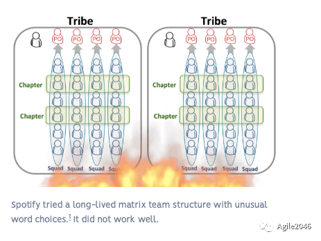“Charpter(分会)领导者是帮助个人成长的仆人领袖。他们并不真正与任何团队合作。所有团队都直接报告给他们。他们并没有真正的责任。他们没有承担责任。很容易将产品所有者视为团队的经理。”